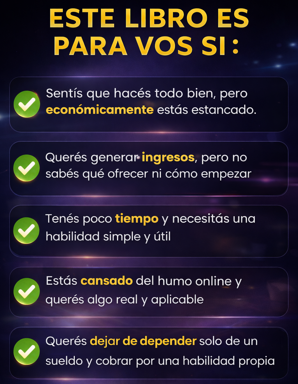 Una vez finalizada la compra, recibís el ebook en formato digital directamente en tu email y también podés descargarlo para verlo desde celular, computadora o tablet, cuando quieras.